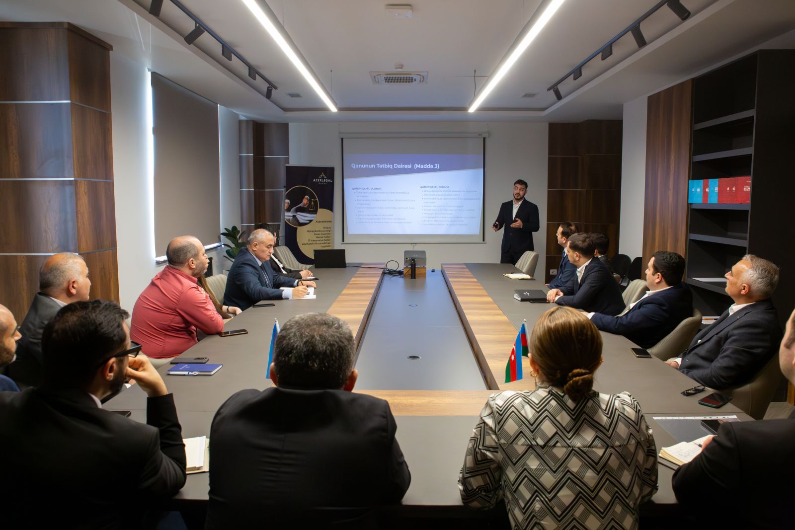 Tədbirdə iştirakçılara qanunun mahiyyəti, tətbiq dairəsi və praktiki əhəmiyyəti ətraflı şəkildə izah olunub. Sahəyə birbaşa təsir edən hüquqi müddəalar barədə sahibkarlara dolğun məlumatlar təqdim edilib, mövcud qanunvericilik çərçivəsi müfəssəl şəkildə təhlil olunub.
