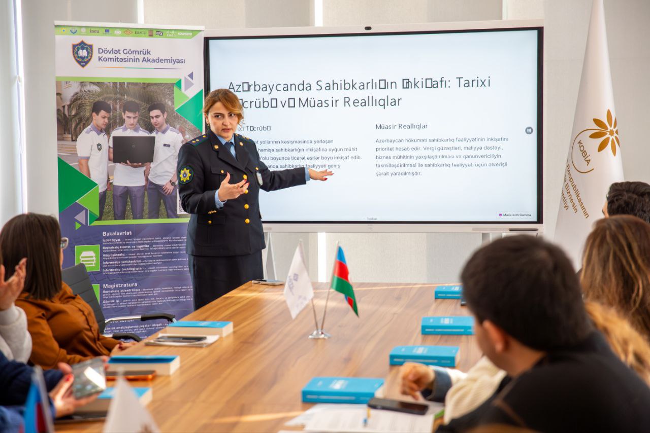 Azərbaycan Gömrük Təmsilçiliyi və Logistika Şirkətləri Assosiasiyasının (AGTL) təşkilatçılığı və Dövlət Gömrük Komitəsinin Akademiyasının iştirakı ilə Bakı KOB Evində “Sahibkarlıq şəraitində müəssisələrin fəaliyyəti və KOB-ların inkişafı” mövzusunda mühazirə tipli görüş baş tutub.