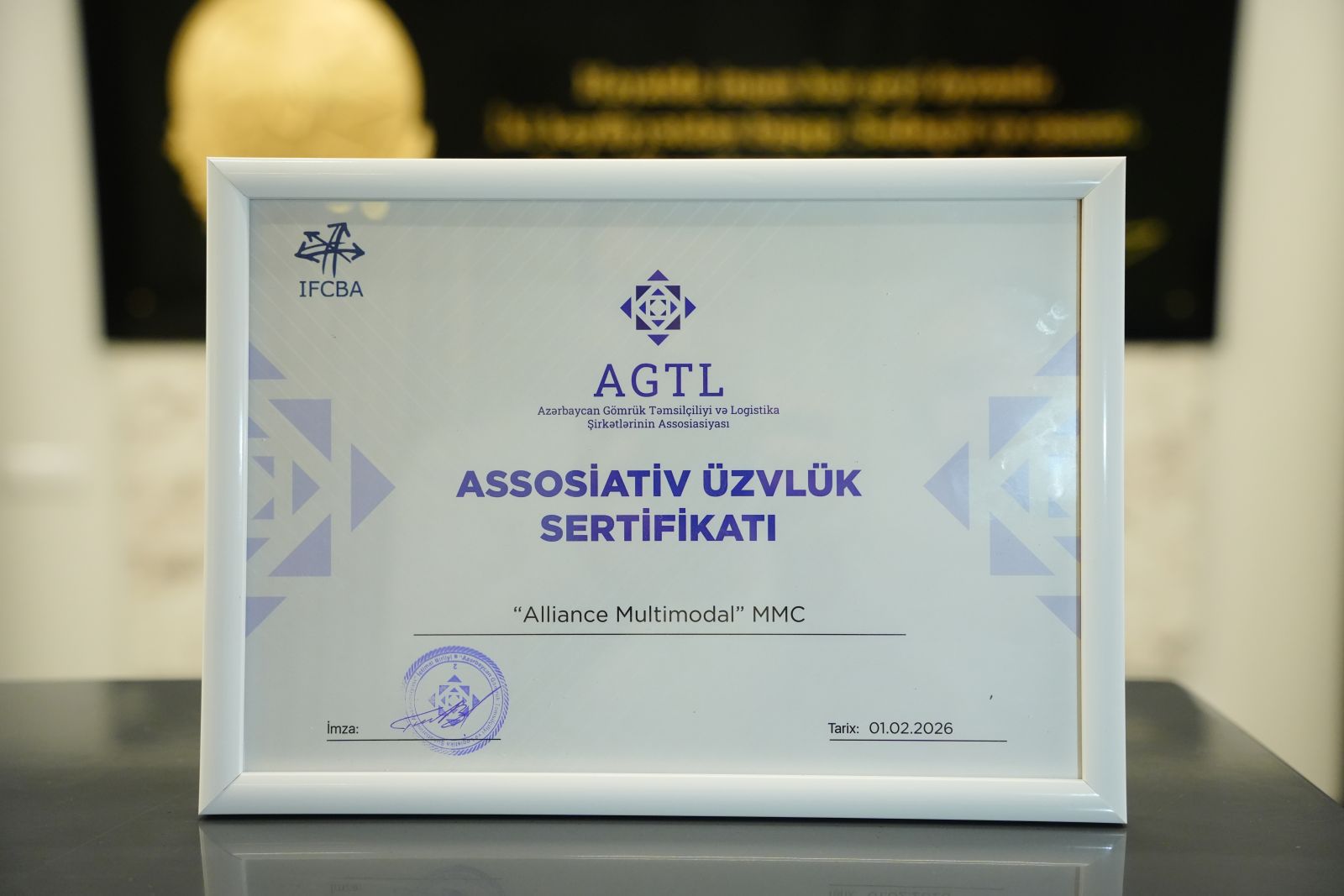 Azərbaycan Gömrük Təmsilçiliyi və Logistika Şirkətlərinin Assosiasiyasının (AGTL) sıraları genişlənməkdə davam edir. Alliance Multimodal MMC Assosiasiyanın üzvlüyünə qəbul edilib.