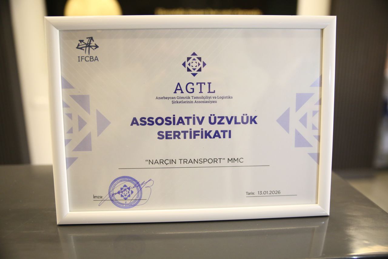 Logistika və nəqliyyat sahəsində fəaliyyət göstərən Narçın Transport MMC Azərbaycan Gömrük Təmsilçiliyi və Logistika Şirkətlərinin Assosiasiyasına (AGTL) üzv olub.